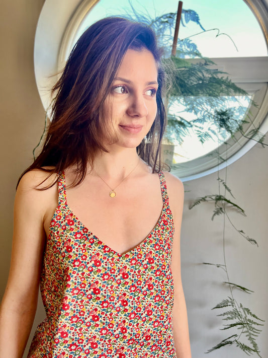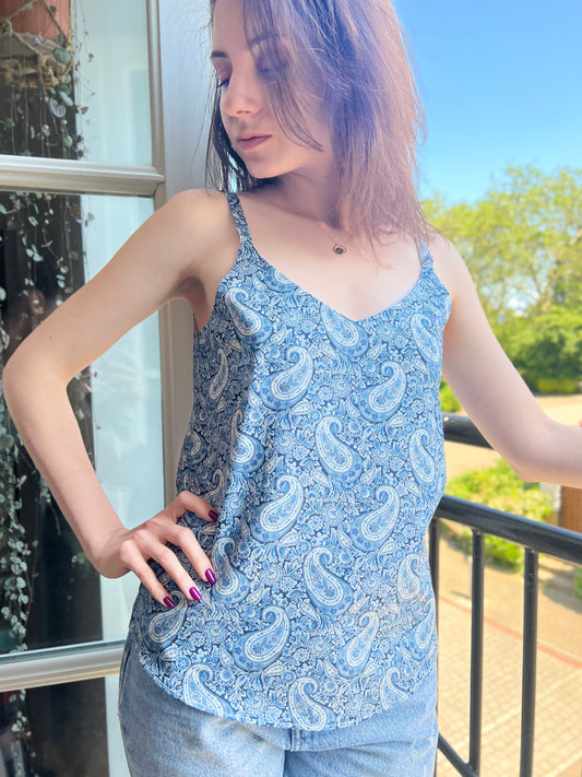 LIBERTY PRINT SILK CAMI TOP, V-NECK