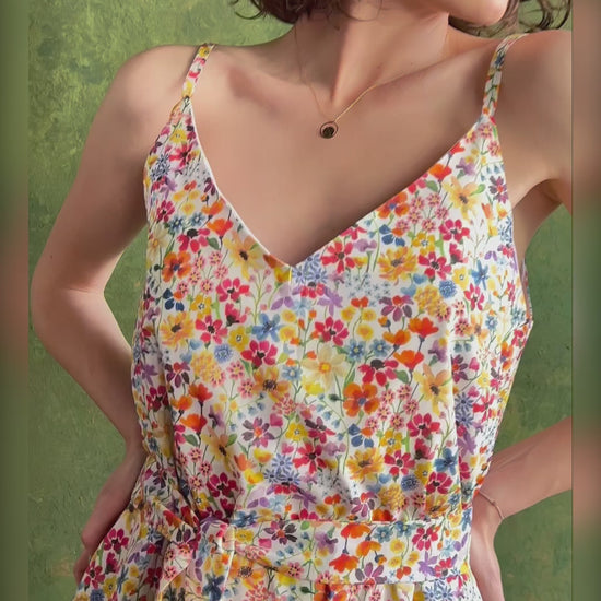 This dress is a perfect combination of style and comfort. It is made with soft Liberty print fabric.
