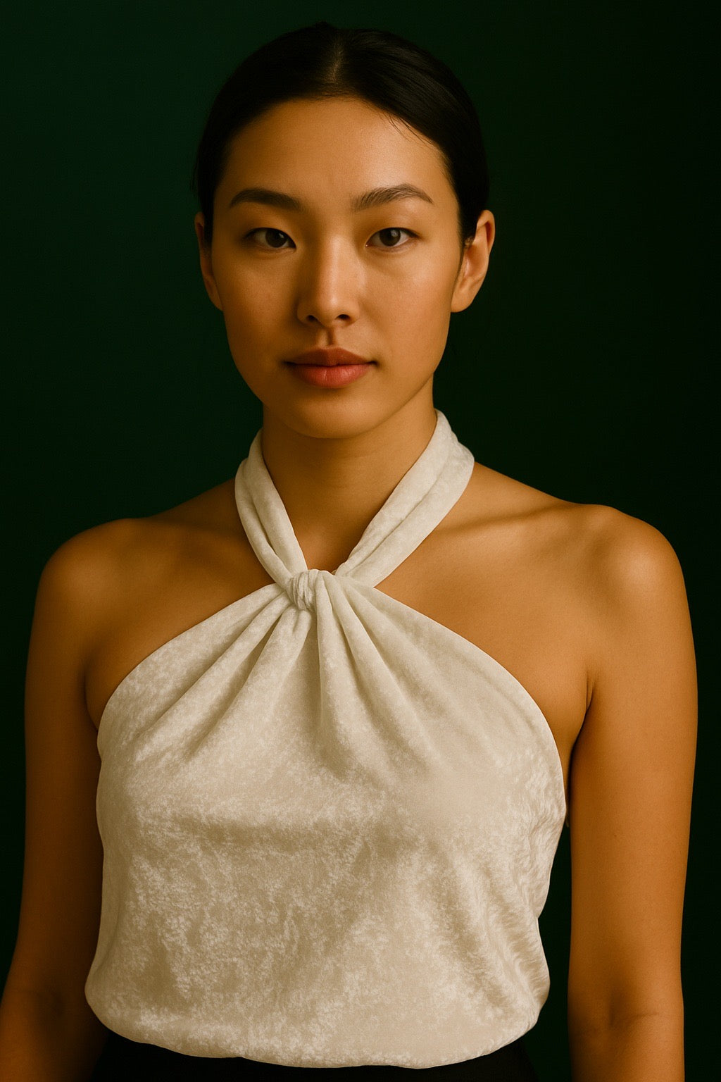 Crafted from soft velvet fabric, this halter-style piece features a beautifully gathered twist neckline that creates an elegant drape across the bodice. Luxurious, comfortable, and effortlessly chic, it’s the perfect statement top for festive dinners, winter events, or a night out styled with tailored trousers or a sleek skirt.